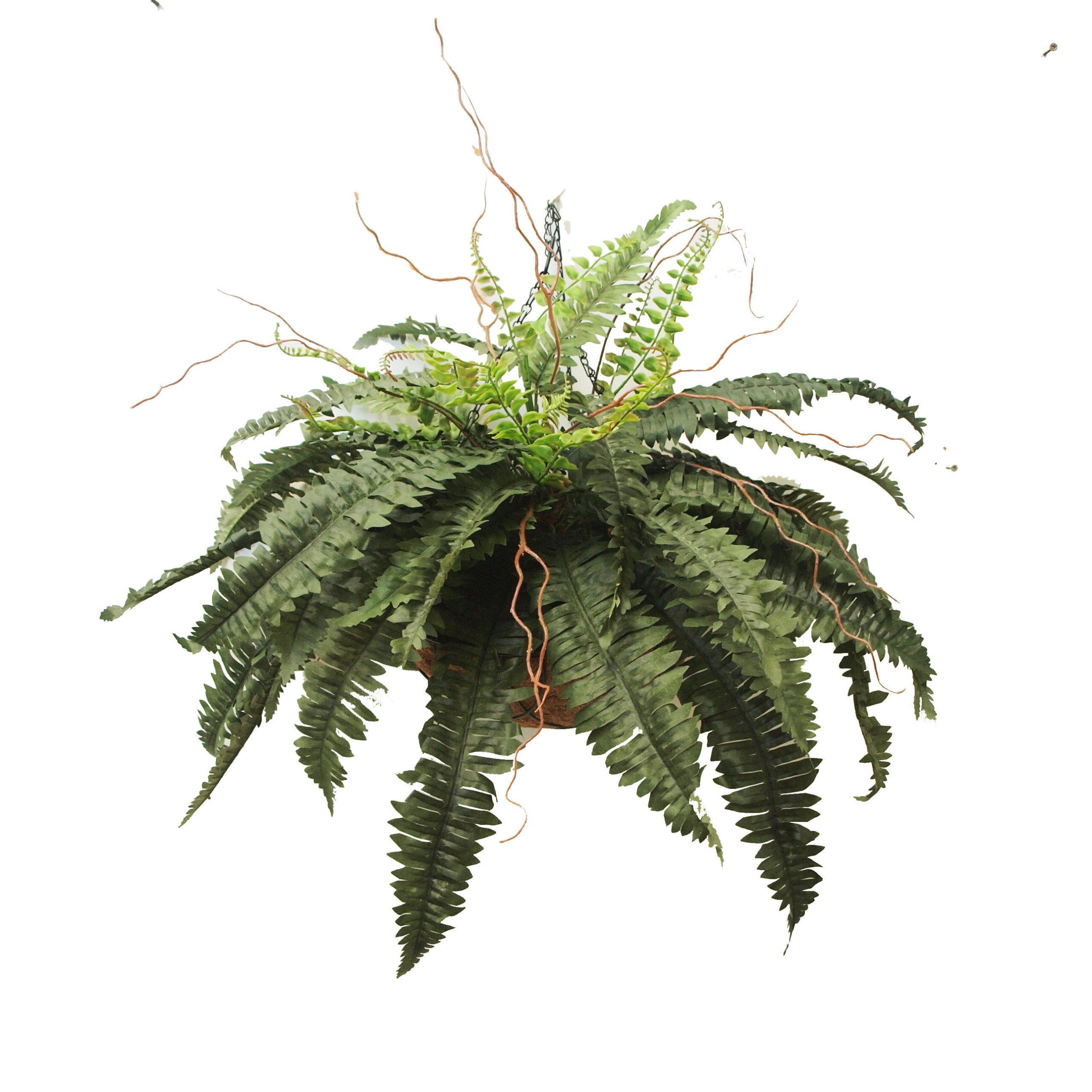Artificial Boston Fern complete in Hanging Basket.
